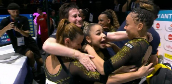 Equipe comemorou muito a conquista inédita (Foto: Reprodução/Sportv) O Brasil fez história e garantiu a medalha de prata por equipes no Mundial de Ginástica Artística, na Antuérpia, na tarde desta quarta-feira (4). A conquista é inédita para o país, que ganhou uma medalha na disputa por equipes pela primeira vez. Além disso, a equipe feminina já garantiu vaga para os Jogos Olímpicos de Paris 2024.