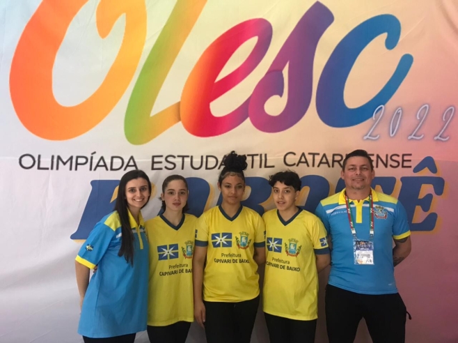 A delegação de karatê de Capivari de Baixo representa o município em Curitibanos, na região da Serra, na 21ª edição da Olimpíada Estudantil Catarinense (Olesc). São dez atletas e quatro membros da comissão técnica. E a primeira medalha já está garantida com Evelin Aguilera, Larissa Rocha e Maria Luiza Margoti, um terceiro lugar na categoria kata feminino por equipe.