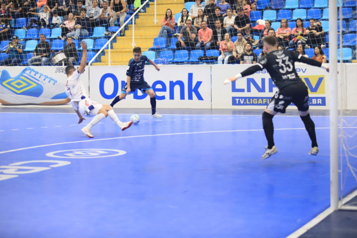 Em uma rápida escapada, os visitantes chegaram a virar o marcador. Mas, aos 13 jogados, o artilheiro não desperdiçou a chance e, com uma assistência de Dentinho, Augusto equilibrou o placar novamente. A partir de então, o Tubarão reagiu e passou a dominar as ações ofensivas. Na volta para a etapa final, Murilo arrancou em velocidade pelo corredor esquerdo e pifou Augusto, que fez seu hat-trick na partida e está entre os cinco artilheiros da Liga.