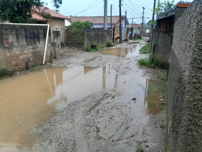 “Com a execução do calçamento, a rua da frente ficou mais alta que as demais, a água da chuva barra no calçamento e volta para trás, atingindo toda a nossa comunidade”.