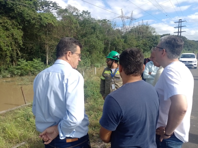 A prefeitura vai iniciar em instantes a abertura de um canal que fará o escoamento do alagamento na região dos bairros São Martinho e Vila Esperança para o Rio Capivari. A ação emergencial acontecerá na marginal da BR-101 nas proximidades do complexo termelétrico Jorge Lacerda.