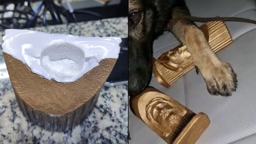 Policiais rodoviários federais e policiais civis de Santa Catarina e do Paraná localizaram na noite desta quinta (13), na BR-101 em Joinville, cerca de 200 gramas de cocaína escondidas dentro de duas peças religiosas com o rosto representando Jesus Cristo.
