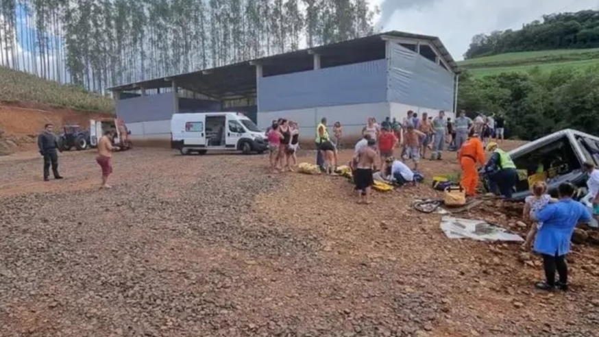 O acidente ocorreu por volta das 12h perto da localidade conhecida como Linha Amizade. De acordo com os bombeiros, o ônibus estava em uma estrada de terra quando saiu de pista e bateu no barranco.
