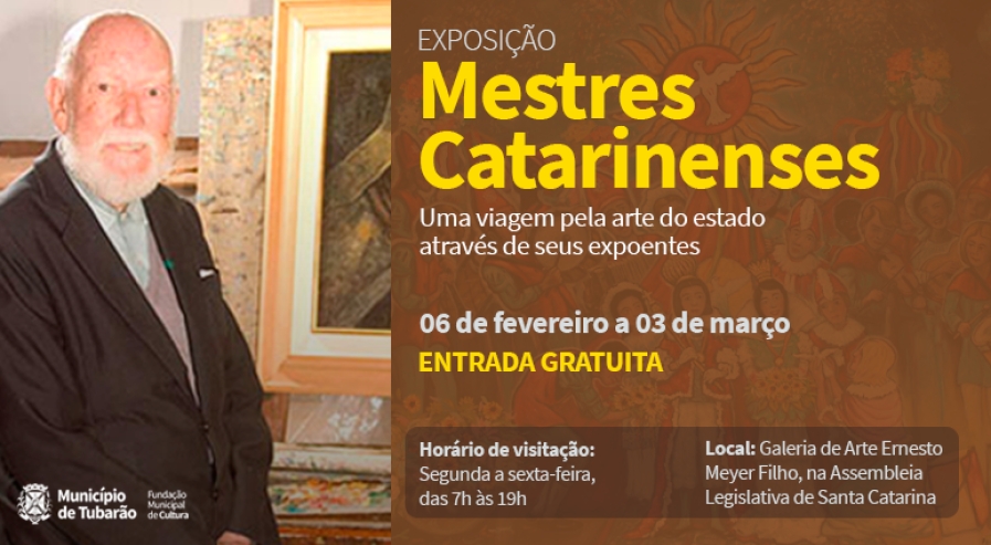 A exposição “Mestres Catarinenses” é realizada na Galeria de Arte Ernesto Meyer Filho da Alesc. O horário de visitação é de segunda a sexta-feira, das 7 às 19 horas, com entrada gratuita.