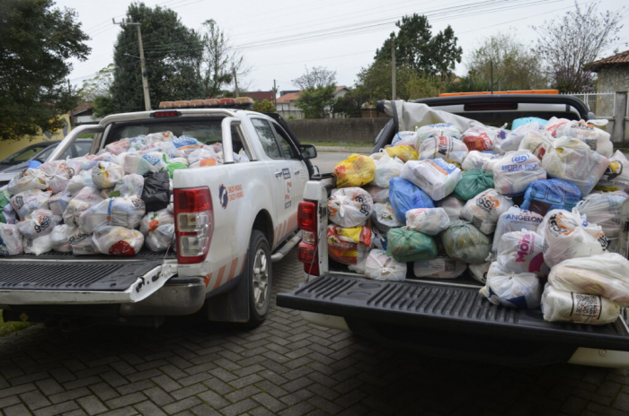 Foram necessárias duas caminhonetes da Secretaria de Proteção e Defesa Civil para transportar as doações da Arena para a sede da APAE, no bairro Passagem.
