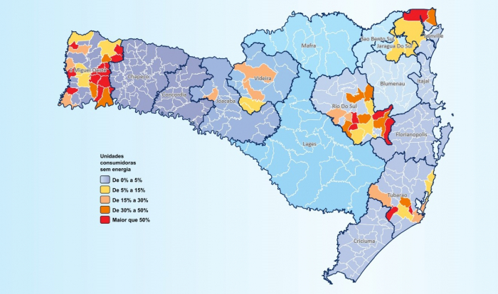 Somente em Santa Catarina, às 8h56, 526 mil unidades consumidoras estavam sem energia durante o apagão. A região mais afetada foi o Oeste, onde ocorreu o maior número de desligamentos acidentais por área.