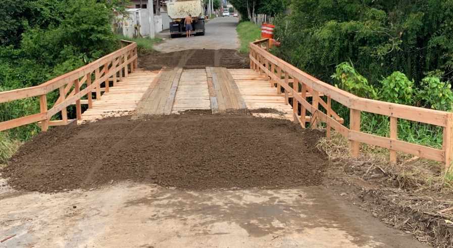 A secretaria de Infraestrutura concluiu nesta segunda-feira (16) a reforma da travessia de madeira que faz a ligação das ruas Vereador João Praxedes Teixeira e Tenente João Luís Maus, a popular “ponte do Jarrão”. O local já está reaberto ao tráfego de veículos.
