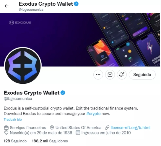 Com quase 200 mil seguidores, a conta do IBGE na rede social publica as pesquisas realizadas pelo órgão. No início da noite desta segunda, no entanto, a página do instituto exibiu informações sobre um serviço de criptomoedas dos Estados Unidos.