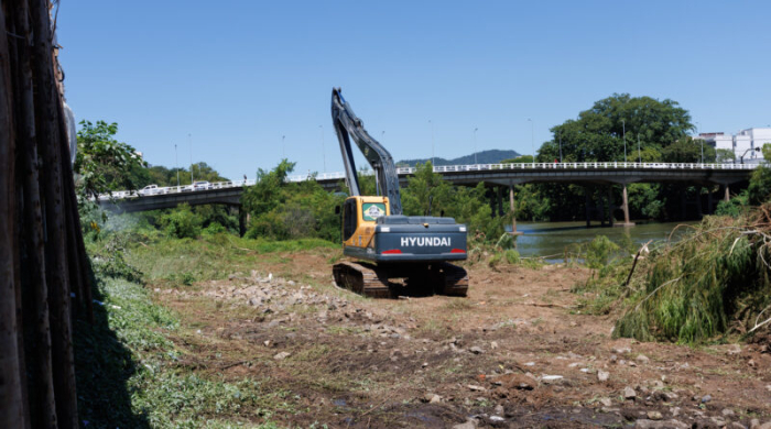 Trabalho é necessário porque o material acumulado compromete o escoamento da água do rio Tubarão.