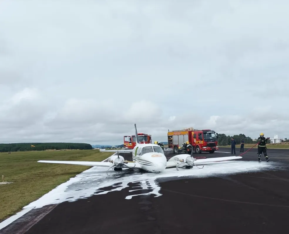 Um avião do governo de Santa Catarina fez um pouso de emergência no Aeroporto Federal Antônio Correia Pinto de Macedo, em Lages, na Serra, nesta sexta-feira (5). A aeronave fazia um voo teste e teve um princípio de incêndio durante o pouso, que foi controlado. Ninguém se feriu.