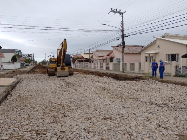Além do rebaixo da rua, que terá a altura compensada posteriormente com as camadas de base, subase e asfalto, a via ainda recebe algumas intervenções na rede de abastecimento de água da Tubarão Saneamento. Esse trabalho está na fase final e, com isso, a base de pedras vai avançar em direção ao cruzamento com a rua José Nicolau de Carvalho e ingressar no loteamento Saul Wanderlind.