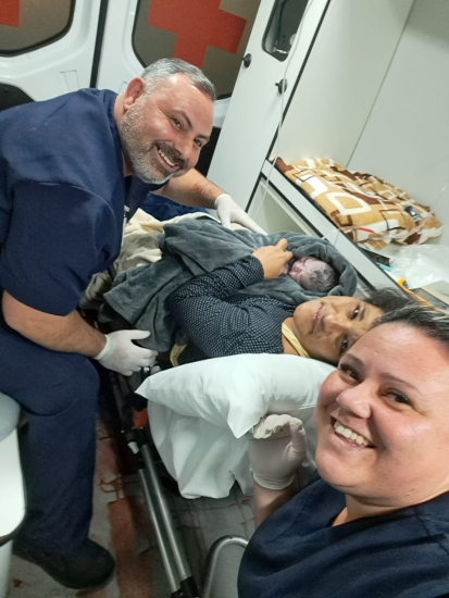 A equipe técnica que acompanhava a paciente realizou todos os procedimentos necessários no interior do veículo, garantindo a segurança da mãe e do recém-nascido.