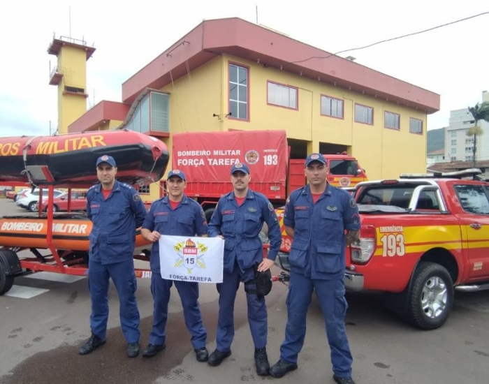 O Corpo de Bombeiros Militar de Santa Catarina (CBMSC) iniciou o apoio ao Corpo de Bombeiros Militar do Rio Grande do Sul (CBMRS), nesta quarta-feira, dia 6, para o atendimento aos cidadãos atingidos pelas intensas chuvas ocorridas no estado vizinho. Uma aeronave da PMSC, o Águia 04 também está, no Rio Grande do Sul para apoio na força-tarefa.