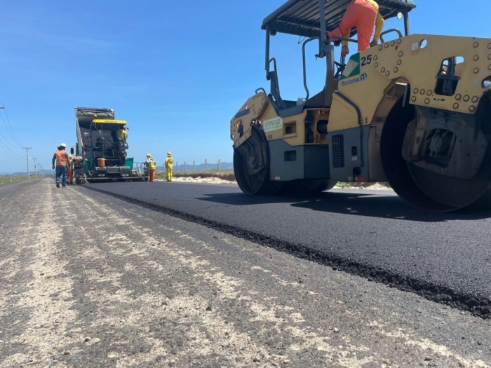 A previsão é que até a primeira semana de março pelo menos 1,5 quilômetro de asfalto seja aplicado na rodovia lagunense. Vale ressaltar que 8,6 km da Aggeu Medeiros (Tubarão) estão pavimentados, cerca de 16 km com terraplanagem (contando os 8,6 asfaltados) e 14 km com sub-base pronta (também contando com os 8,6 km asfaltados).