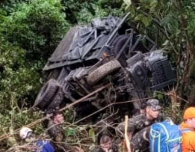 Um acidente envolvendo um caminhão do Exército foi registrado por volta das 8h30, desta quarta-feira (16), em uma área de mata que fica entre Blumenau e Indaial, no Vale do Itajaí. O veículo caiu em uma ribanceira de aproximadamente 20 metros.