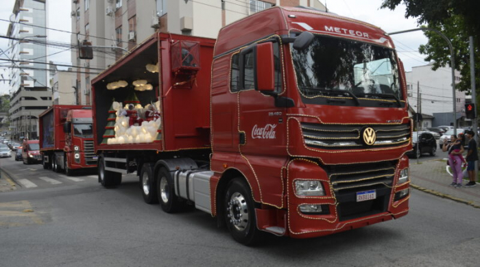A caravana de Natal Coca-Cola Femsa passou por Tubarão nesta quarta-feira (27). Os três caminhões decorados, dos quais um transportava o casal Noel, circulou por diversas ruas do município e despertou, entre as pessoas que estavam por perto, a magia de Natal.