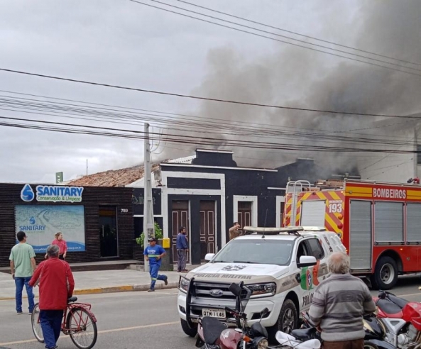 Uma casa noturna, que fica ao lado do galpão das Casas Fretta, foi tomado pelo incêndio na tarde desta quarta-feira (21), em Tubarão. O local fica na Avenida Marechal Deodoro, no Centro.
