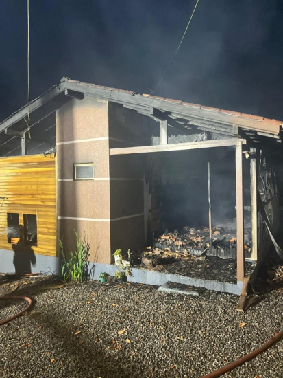 Conforme informações do Corpo de Bombeiros Militar, o fogo atingiu a casa de madeira de aproximadamente 70 metros quadrados. Aos fundos da residência, havia uma garagem com pequena quantidade de materiais inflamável acumulados (tintas), que não foram atingidos pelo fogo. Com isso, foi possível preservar a parte dos fundos de alvenaria, com área de aproximadamente 40 metros quadrados, e retirar um carro e uma motocicleta que estavam estacionados.