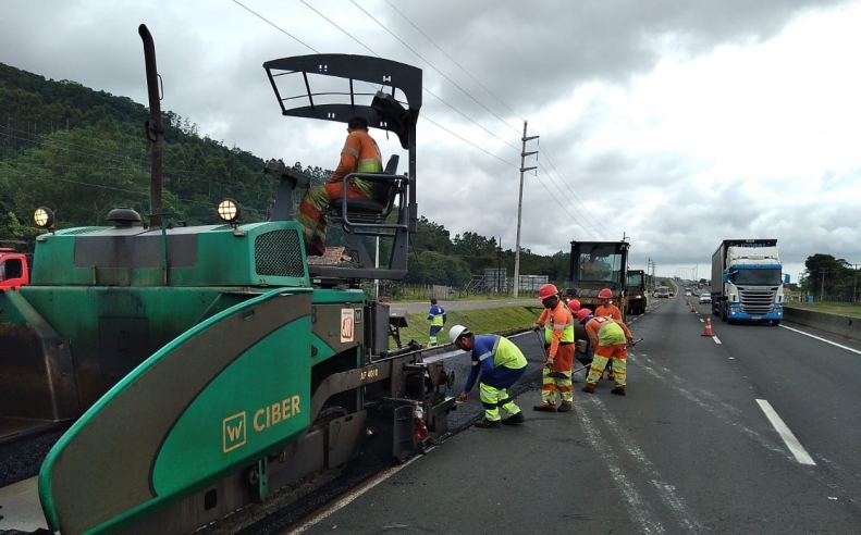 Imbituba: correções emergenciais localizadas no pavimento entre os kms 293 e 294 – pista sentido sul. Entre 7:00h e 17h