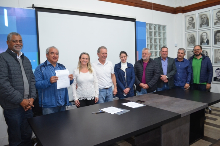 O prefeito Joares Ponticelli e o diretor-presidente da Fundação Municipal de Educação, Maurício da Silva, entregaram na manhã desta quarta-feira (20), a ordem de serviço para a empresa Vila Banker, vencedora da licitação e que será responsável pela reforma do espaço escolar.