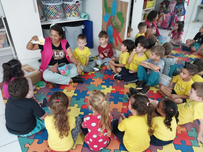 "O projeto tem como finalidade desenvolver o gosto e o prazer pela leitura, estimulando a criatividade, a imaginação e a comunicação. Além disso, busca fortalecer o reconhecimento das letras do alfabeto, das vogais e das iniciais dos nomes, promovendo a exploração e o manuseio dos livros. A proposta é fazer com que as crianças descubram um mundo de imaginação por meio das histórias contadas e dramatizadas em sala de aula", ressalta a professora regente Fabiana Mathias.
