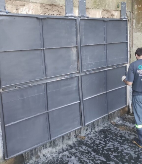 Fotos: PMT A montagem das últimas comportas metálicas na saída de córregos e afluentes do Rio Tubarão foi finalizada nesta semana, pela Coordenadoria de Proteção e Defesa Civil. Os equipamentos terão a função de bloquear os canais e evitar que o principal rio da região alague alguns bairros e comunidades, caso o nível se eleve além do normal em períodos de chuvas mais intensas.
