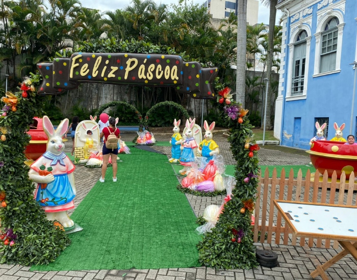 A Vila de Páscoa, que tem atraído dezenas de famílias à Praça Pery Camisão diariamente desde o início do mês, continua aberta ao público. O espaço conta com brinquedos e ambientes instagramáveis, com acesso totalmente gratuito.