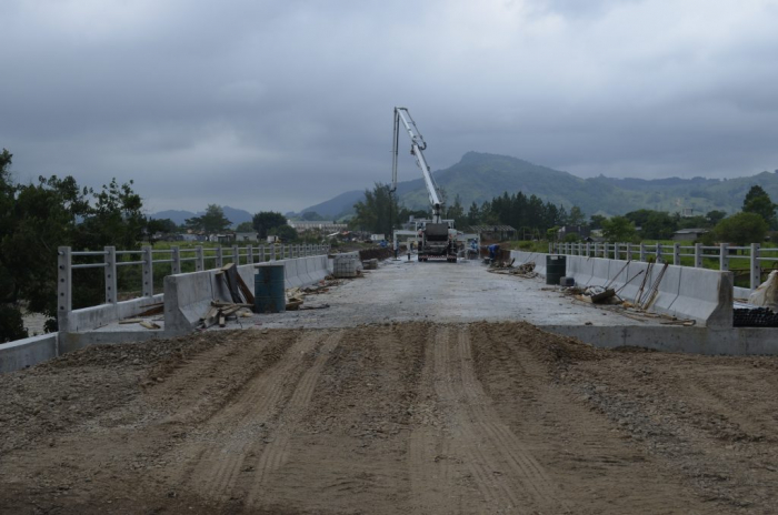 Na margem direita o aterro para acesso à cabeceira da ponte está praticamente pronto. No lado esquerdo a terraplanagem está em andamento e deve ser finalizada em duas semanas.