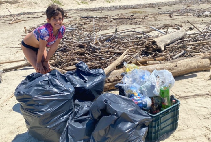 A manhã deste domingo, dia 12, foi de trabalho voluntário para Siena Beatrice Bedin, de 11 anos. Ela e mais três voluntárias realizaram a limpeza da beira-mar na Barra Velha, em Araranguá.