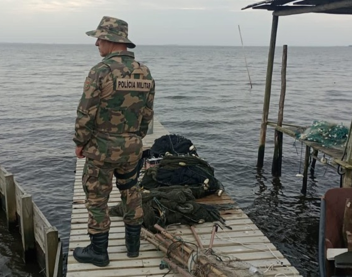 A ação ocorreu nesta terça-feira, dia 19, na localidade de Garopaba do Sul, no município de Jaguaruna, e resultou na apreensão de 25 artes de pesca conhecida popularmente como Gerival, sete baterias e 14 redes tipo aviãozinho, petrechos utilizados para captura de camarão.