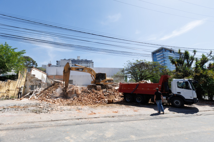 A Prefeitura de Tubarão seguiu neste domingo (14) com os trabalhos de demolição do prédio da antiga Delegacia de Polícia, no Centro. As equipes da Secretaria de Infraestrutura estão finalizando o transporte dos resíduos da estrutura, que estava condenada e havia se tornado ponto de ocupação irregular.