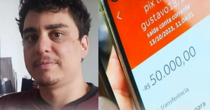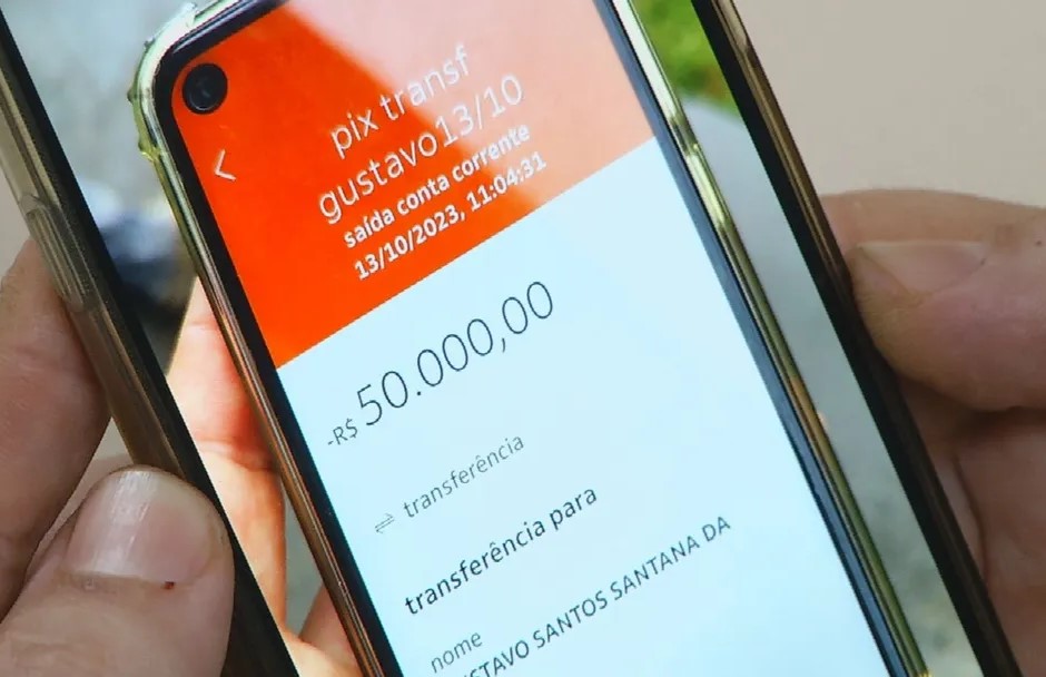 Conforme extrato da transferência, o Pix foi enviado para Gustavo no dia 13 de outubro. Quem transferiu o valor para ele foi o pai do Vinicius Eduardo Silva, moradores de Itumbiara, também no sul de Goiás, quando ele estava pagando um carro que ele comprou e, por engano, errou o último número da chave Pix.