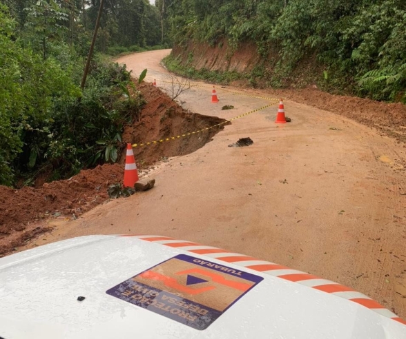 A Defesa Civil sinalizou o trecho que está em meia pista e a coordenadoria de Manutenção de Estradas Rurais da secretaria Municipal de Agricultura e Interior vai providenciar os reparos assim que as condições meteorológicas estiverem favoráveis.