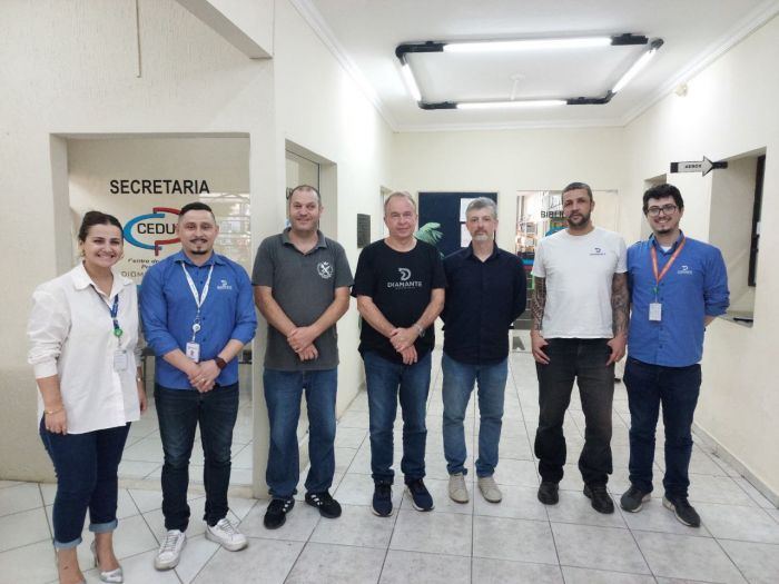 Na ocasião, também estavam presentes o diretor da instituição, Jarbas Westrupp Corrêa, o Coordenador Técnico do curso de Mecânica Integral, Huilian Raldi Vitorassi, a Analista de Responsabilidade Social e Governança da Diamante, Beatriz Joaquim Ribeiro, o Analista de Infraestrutura e Cloud da Diamante, Ezequiel Conceição Silveira, e o Analista de Infraestrutura de Redes e Telecom, Marcos Gonçalves.