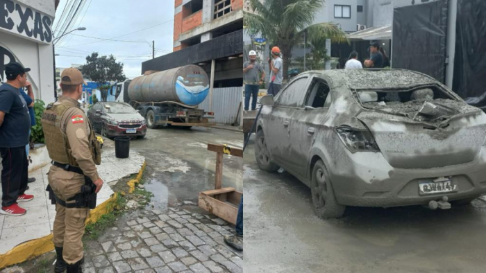 Na tarde desta sexta-feira (6), em Itapema, um carro foi concretado por uma massa de concreto que caiu do trigésimo andar de um prédio em construção. A polícia foi acionada para atender ao chamado e encontrou o proprietário do GM Prisma visivelmente abalado.