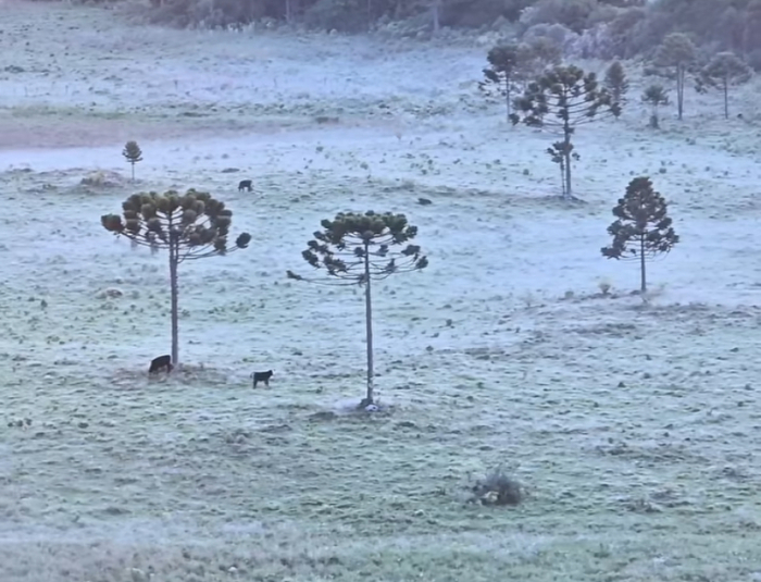 A presença de ar seco, céu limpo e forte resfriamento noturno favoreceu a formação da geada. Várias imagens mostrando o branquinho de gelo foram registradas.