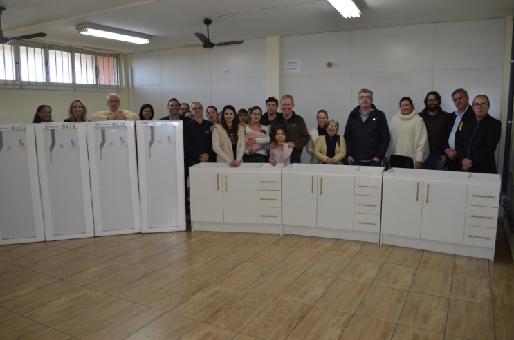 O prefeito Joares Ponticelli, a chefe de Gabinete do prefeito Kércia Cardoso Menegaz e o vice-prefeito Caio Tokarski prestigiaram a entrega feita pela equipe da Fundação Municipal de Desenvolvimento Social, liderada pelo diretor-presidente André Fretta May. O grupo Angeloni foi representado pelo gerente regional Gesiel Vieira da Silva e pelo gerente da loja de Tubarão Renato Minotto Bez Birolo. Elemar Cardoso representou o Sindimad.