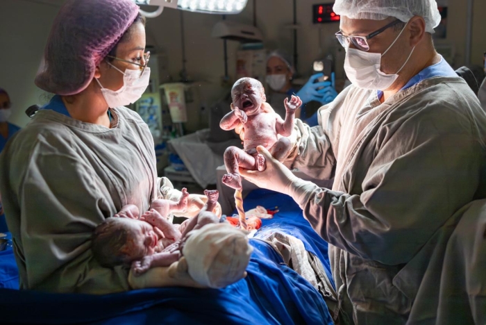 “Mais interessante foi que essa gestação múltipla foi tricoriônica e triamniótica (3 placenta e 3 bolsas), ou seja " três caminhas e três mosqueteiros" uma para cada bebê. Isto foi um dos fatores positivos de manutenção da gestação quase ao termo”, relata. “Outro fator que considero importante foi a aderência da Grazi ao pré-natal de alto risco, sempre realizando o monitoramento e os exames conforme a conduta médica. Resultado: um parto lindo com bebês saudáveis e parturiente com ótima recuperação. Parabéns ao casal”