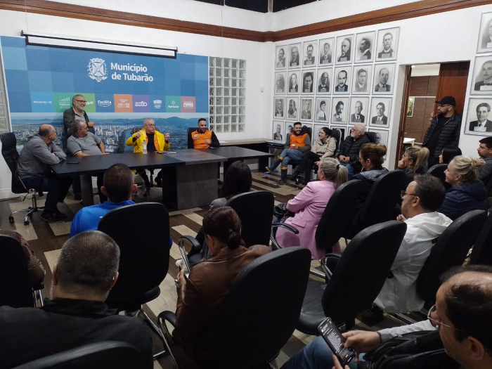 Foto: PMT O Grupo de Ações Coordenadas (GRAC) do município de Tubarão fez no início da tarde deste sábado (7) mais uma reunião de avaliação da situação da cidade, em decorrência das fortes chuvas das últimas horas.