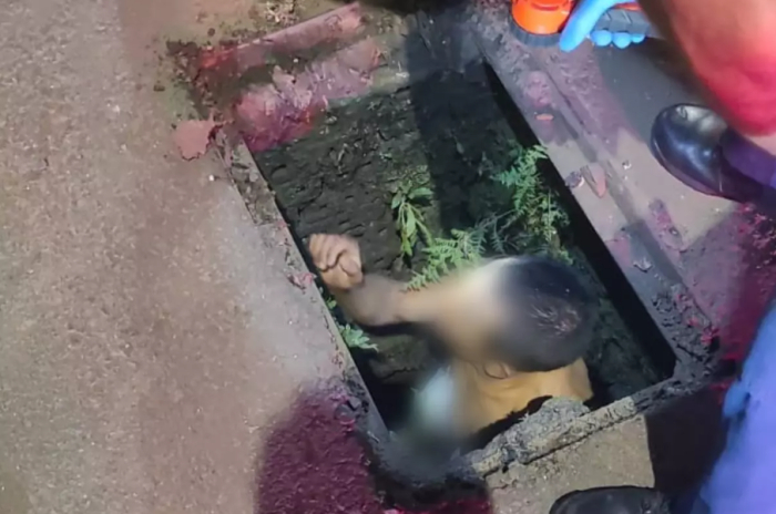 Jovem de 22 anos passou a noite em galerias subterrâneas e foi resgatado nu de bueiro após fugir com medo de ser detido por suspeita de violência doméstica em Chapecó