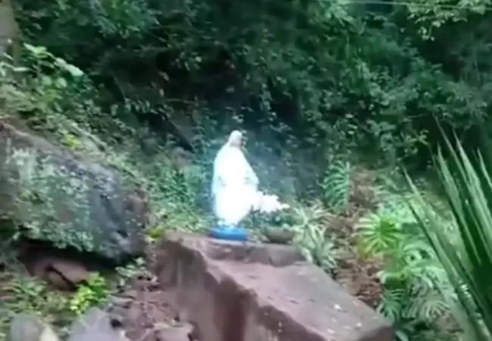 Um vídeo divulgado nas redes sociais mostra a emoção de um morador ao ver a imagem de Nossa Senhora totalmente intacta após uma enchente assolar a cidade. O fato ocorreu na Gruta da Aurora, em Tuiuty.