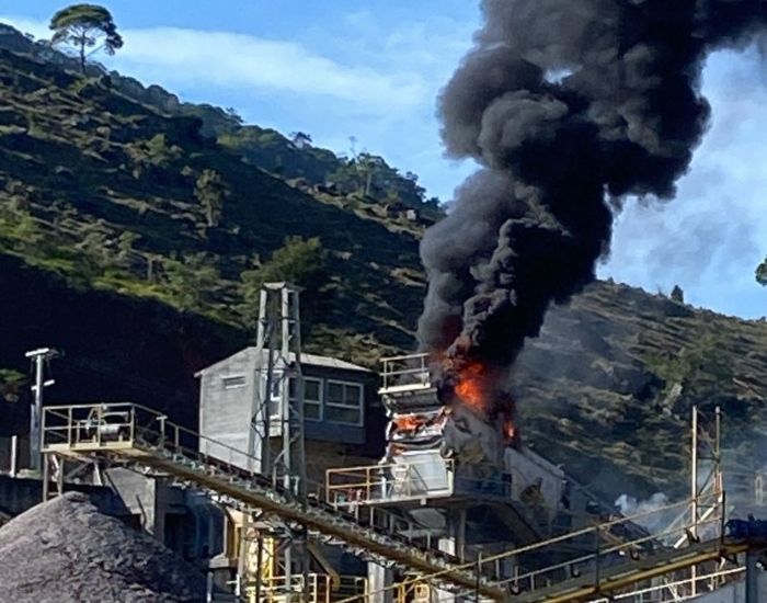 O fogo consumiu parte da esteira que leva minérios para o equipamento, além de partes emborrachadas em seu interior.
