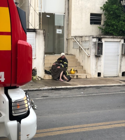 No local tratava-se de um incêndio no 3º andar de um apartamento, com uma vítima presa em seu interior. Quando os Bombeiros chegaram, arrombaram a porta e resgataram a vítima, um masculino de 63 anos. Após realizar o resgate, com a vítima fora de perigo, a guarnição realizou o combate as chamas.