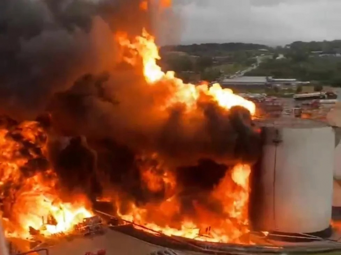 Quatro tanques de armazenamento de combustíveis foram atingidos pelo fogo. Já foram usados mais de 600 mil litros de água.