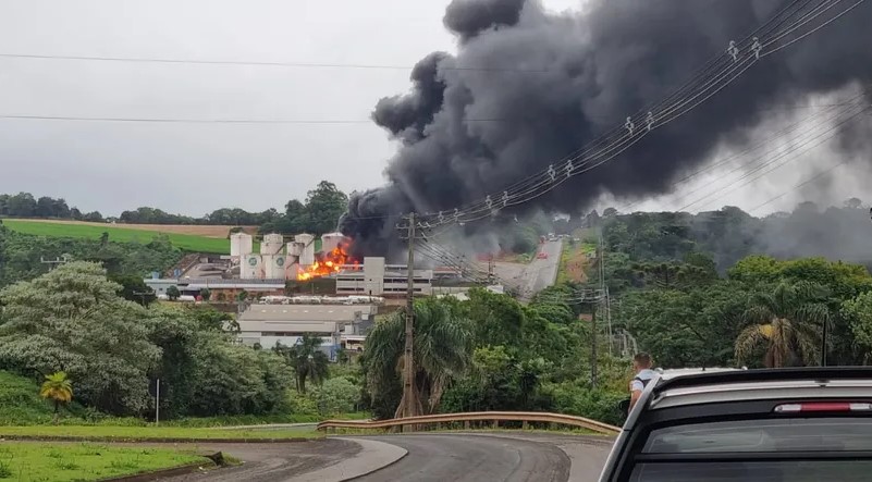 De acordo com a Defesa Civil municipal, a fumaça densa, escura e quente é tóxica, e se espalha para outras cidades da região. A orientação é evitar o contato com ela.