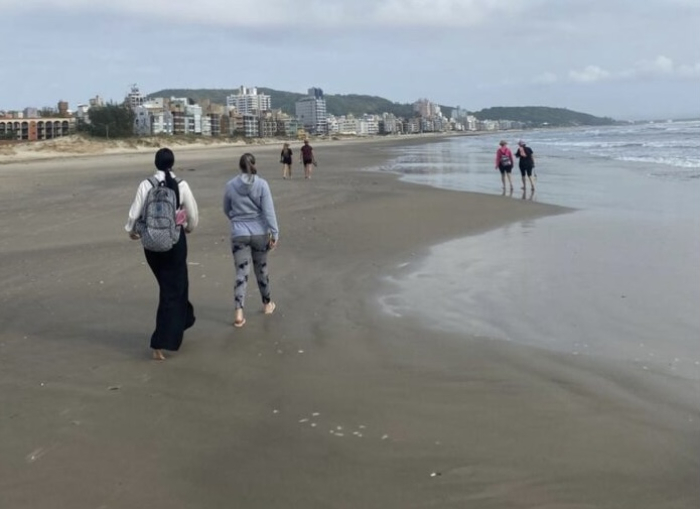 Conduzido pela naturóloga Isaura e pela profissional de Educação Física Uriana, o projeto propõe o uso terapêutico do ambiente marinho, com práticas como alongamentos, caminhada descalça na areia e na água, relaxamento e meditação à beira-mar.