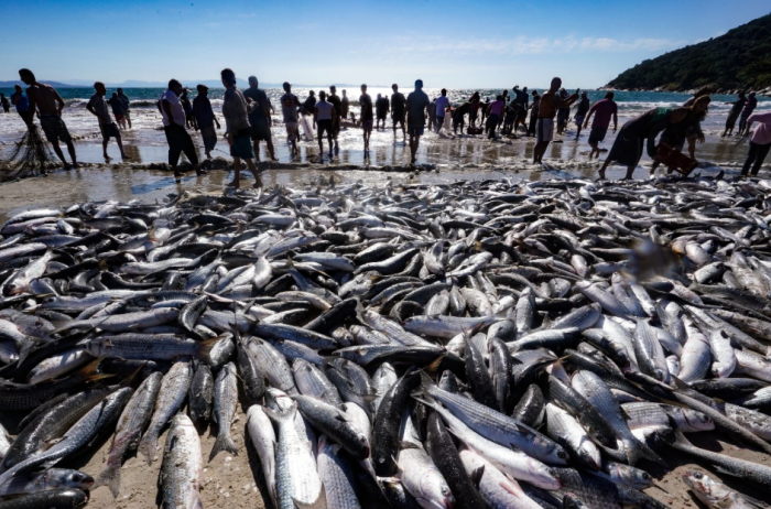 Segundo o empresário João Alberto Schmitz Filho, o Baiuka, a captura foi efetuada com canoas a remo e com a atuação de três cercos. Ao todo, aproximadamente oito pescadores fizeram os lances e mais de 50 pessoas da comunidade ajudaram a puxar do mar. A ação foi realizada entre às 6h30 e 11 horas.