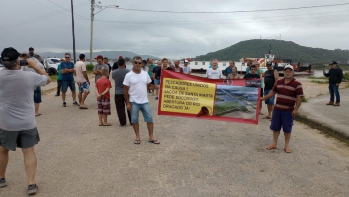 Pescadores da região de Santa Marta Pequena, em Laguna, fizeram nesse fim de semana uma manifestação pedindo pela reabertura do rio Dragado.