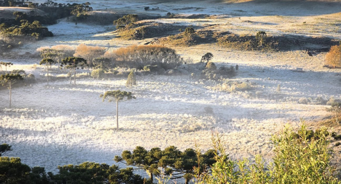 A Epagri/Ciram indica que formações de fortes geadas acompanham a frente fria. Dessa forma, as paisagens catarinenses podem amanhecer cobertas de branco entre sábado e a próxima terça-feira.