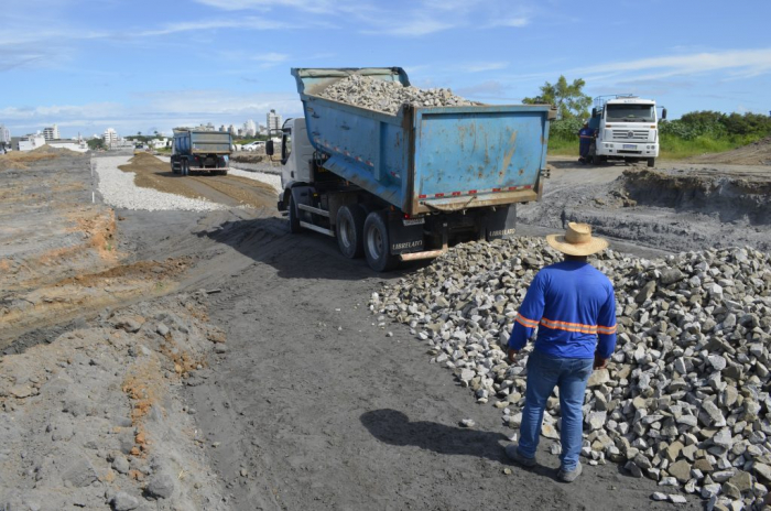 A preparação da terraplanagem, com as primeiras camadas de pedra do tipo macadame e areia, além das caixas coletoras da rede de drenagem, já indicam o prolongamento da rua e onde ficará a nova pista com 10 metros de largura. A obra contempla, também, uma ciclovia e uma faixa de estacionamento.